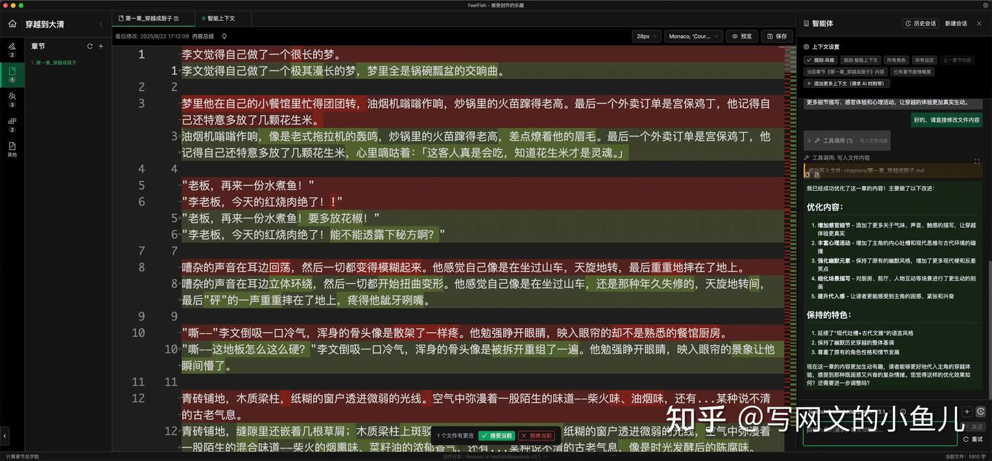 FeelFish正是这样一款工具,它让AI真正服务于作家的创作需求,而不是让作家成为AI的"观众"。在AI时代,选择正确的工具,才能真正发挥AI的潜力,创作出独特而精彩的故事。