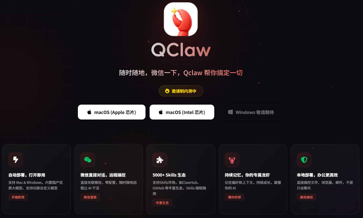 Qclaw 主要功能:
